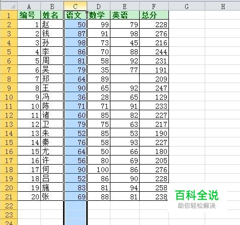 点击C列标,此时鼠标指针变成黑色向下箭头,我们会发现C列被选中 注:选中一列或者一行只需单击列标或者行标