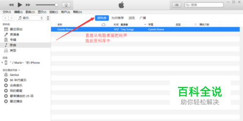 我们设置铃声的歌曲拖入到音乐栏目资料库中