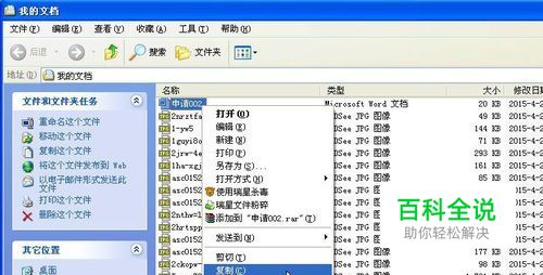 示例中我要发送的文件在“我的文档”中,请参看我的示范操作。 1.打开我的文档,在要发送的文件上点鼠标右键,会出来一个功能菜单,滑动鼠标箭头,把它移动到“复制”项上,再用左键点这项。
