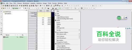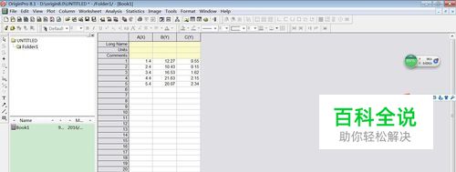 向origin输入数据,A(X), B(Y)分别是X轴和Y轴,C(Y)为Y轴的误差值。