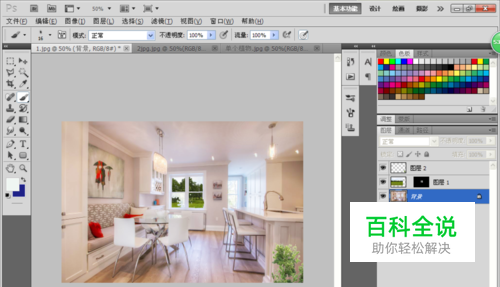 然后在图片中有灯光的地方点击,让灯光变得更亮,如图房间中的灯很暗,可以设置前景色为白色,然后将灯泡点亮。如图,打开草坪图片,然后移动到图层中,如图