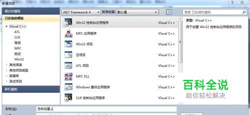 首先新建项目,选择win32控制台应用程序,输入名称后点击确定(这里名称是“怎样创建.c”) 在应用向导的附加选项中选取“空项目”然后完成