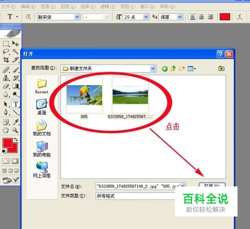 打开Photoshop软件,点击文件/打开,把需要抠的图和想要换的背景图一同导入软件。