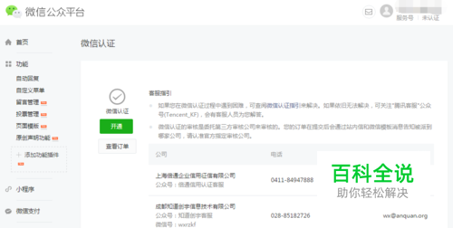 点击左下角的设置-微信认证或者点击右上角的未认证进入认证页面,页面会显示客服指引,还有第三方审核平台的客服联系方式邮箱等
