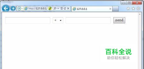 首先,我们新建一个html文档,书写一个form表单,三个input,一个select下拉菜单,代码如下: <html> <body> <form action="test.php" method="post"> <input type="text" name="first" /> <select name="s"> <option value="+">+</option> <option value="-">-</option> <option value="*">*</option> <option value="%">%</option> <option value="/">/</option> </select> <input type="text" name="second" /> <input type="submit" value="send" /> </form> </body> </html> 效果如图: