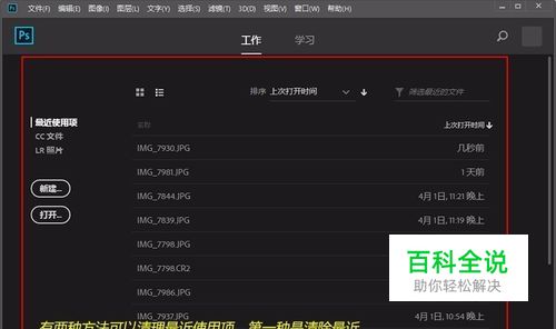 清除后,PS打开的界面里就没有了最近打开的项目。但如果你再次打开文件再关闭后,刚才打开的项目就会显示出来。