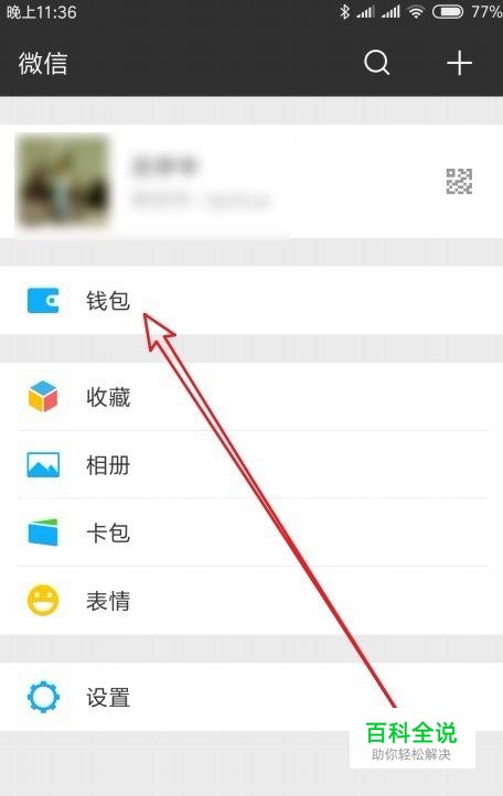 然后在打开的微信我的页面中,点击“钱包”菜单项。