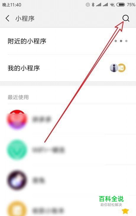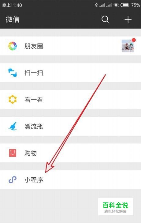 然后在打开的发现页面中找到“小程序”菜单项。