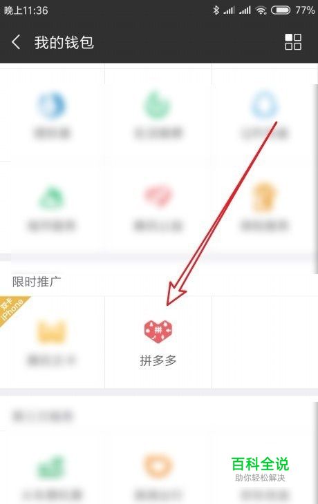 这时就会打开我的钱包页面,在页面中找到“拼多多”的图标。