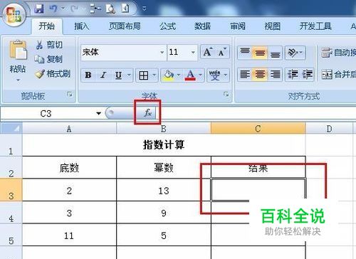 我们在幂值结果列里面选择一个单元格,然后点击代表函数的fx。