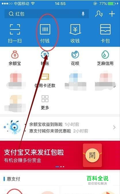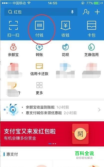 首先打开支付宝首页,在余额宝上面有个 付钱标识,点击打开它