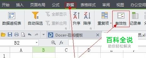 1、选中需要设置的列,选中“数据”-“有效性”;