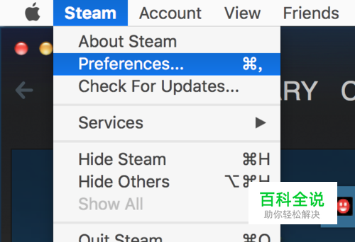 打开Steam mac客户端后,点击右上角的【Steam】,选择【Preferences】