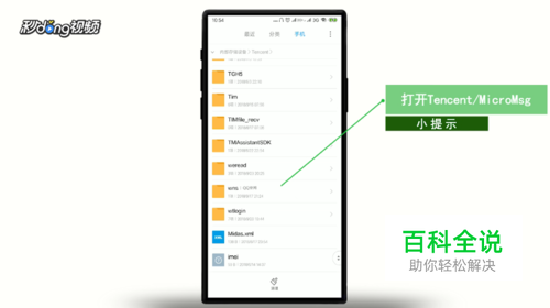 向上滑动找到并打开Tencent文件夹,接着打开MicroMsg文件夹。