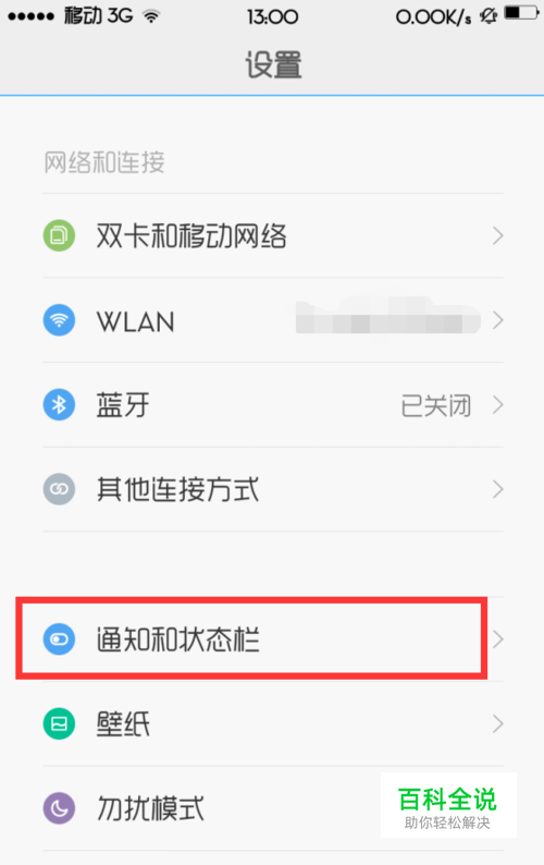 我们打开“ 设置”,选中 “ 通知和状态栏”