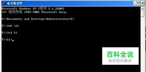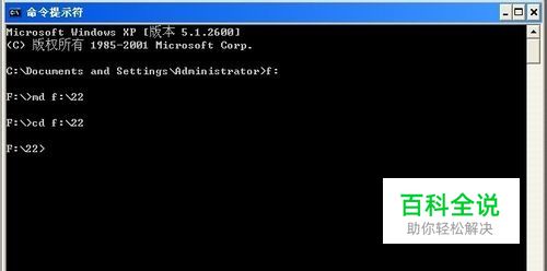 现在f盘下创建两个文件夹,用md命令创建文件名11和22.