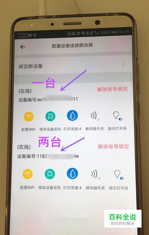 注:一个账号最多可绑定5台打印机,下图是绑定了2台打印机,绑定设备成功后可以在后台看到关于设备的参数信息,也就是设备编号。