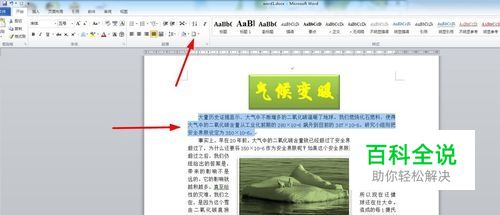 以第一段的段落文字为例,我们先选中第一段落,在开始的菜单栏里找到边框和底纹的标识。