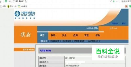 输入密码,进入光猫路由状态页面,这里显示设备的型号,软件硬件的版本号等信息。