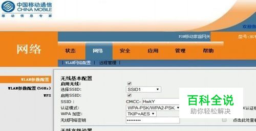 在上面横行的菜单中选择网络一项,可以对无线网络进行设置,包括网络的名称和WIFI的登录密码.