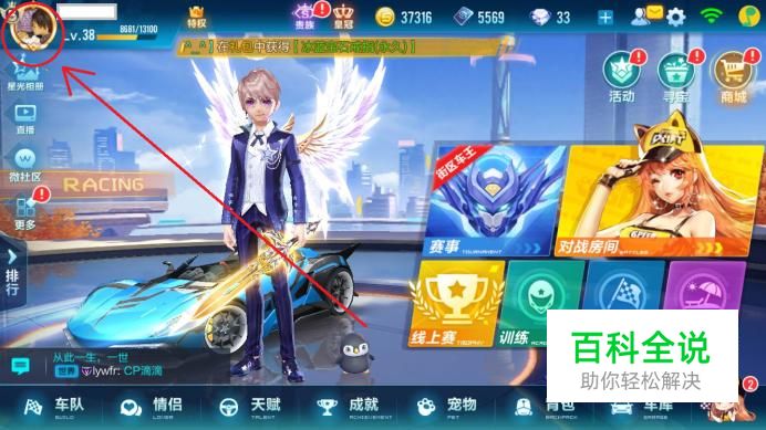 首先,登录QQ飞车手游,进入游戏大厅后,点击左上角的“个人头像”。