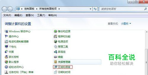 在控制面板界面打开区域和语言。