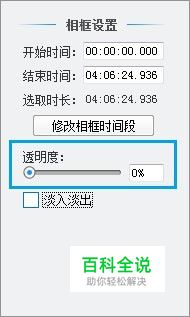在叠加素材面板的左下角,点击“添加相框效果”选择为当前片段添加相框或者指定时间段添加相框。主界面中间参数栏可设置相框的透明度