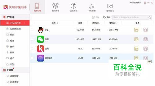 方法一:如果是从App Store下载的应用出现此问题,可以将iPhone与快用苹果助手-PC端连接来删除该应用。