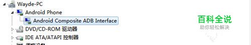 在手机上开启USB调试, (1)在手机上按下“Menu”键(最左边的键),在弹出的菜单中选择“系统设置” (2)选择“安全” (3)在此界面勾选“未知来源”,然后按“返回键”返回上一界面 (4)选择“开发人员选项”界面勾选“USB调试”,“保持唤醒状态”,然后可以返回主界面 (5)重新连接USB数据线 (6)安装驱动,并检查驱动是否安装,可以右击“计算机”选择“设备管理器”,如图中所示,证明驱动正常安装。如果是问号和感叹号等,请重新安装驱动。