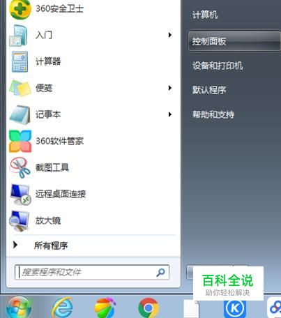 我们可以点击桌面左下角的“开始”按钮,从中点击“控制面板”。