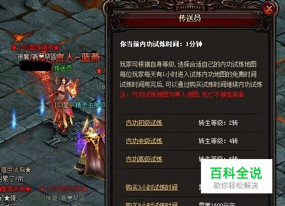 在9377雷霆之怒网页游戏里,会普遍出现一个现象,就是大家光顾着人物等级升级,而忽视了内功等级的提升。为了让大家能更快高内功等级,增强自身的战斗实力。系统特为广大玩家开辟一个专门练内功等级的地图,这就是内功试炼场啦。那雷霆之怒内功试炼场在哪里如何进入呢?我们一起来看雷霆之怒内功试炼场进入等级要求攻略,相信对大家会有所帮助哦。雷霆之怒内功试炼场是一个全体开放的地图,玩家需要进入该地图,可从主城的npc“传送员”处进入。内功试炼场进入有等级限制,该地图共有内功初级试炼、内功中级试炼、内功试炼3个入口,每个入口都有进入等级要求。各个入口的进入等级要求如下: 内功初级试炼——转生等级达到2级或以上; 内功中级试炼——转生等级达到4级或以上; 内功试炼——转生等级达到6级或以上。 玩家进入内功试炼场,除了有等级限制外,还有时间限制。每位玩家每天有1小时免费试炼时间,如果玩家每天试炼时间没用完,可以累积起来直至到用完为止。如果玩家用完了免费的试炼时间,可花费元宝购买更多试炼时间,购买3小时试炼时间需要600元宝,而购买8小时试炼时间需要1600元宝。 由于内功试炼地图是一个单人的危险地图,为了避免仇人的干扰,建议大家挑个人少的时间进行试炼。在进行试炼过程中,最好还是带上幻神,记得吃上一些多倍经验值道具,这样既能提高刷怪效率,还能获得更多的角色经验值。