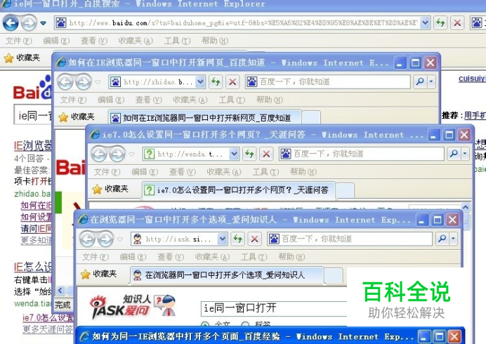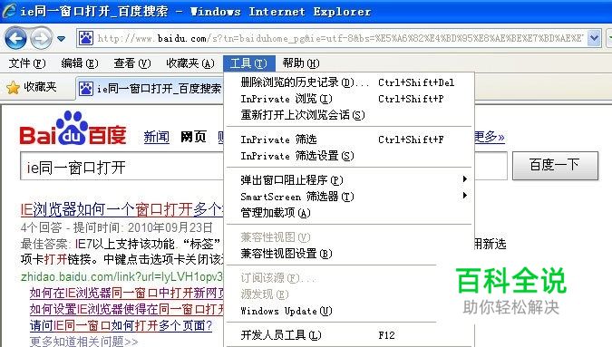 平时我们用的电脑不论是XP还是WIN7,安装好系统后,默认的IE都是一个窗口只能打开一个页面,如果打开的页面多的话,不单影响电脑速度,还会很乱。还有就是有些插件只能在IE下使用。 其实设置比较简单,但有时小技巧可能帮上大忙。步骤如下: 第一步,打开IE---->工具---Internet 选项(一般在最下面) 第二步:Internet 选项---设置 第三步:如图选择下面两项后点确定。关闭IE,重新打开。 结果如下: