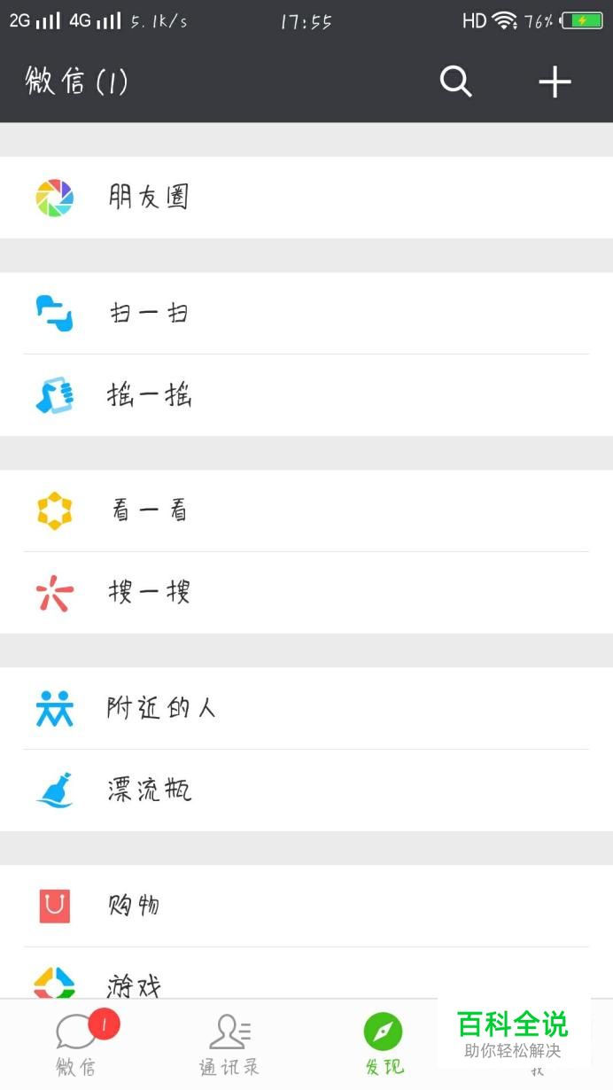 打开手机微信,点击“发现”,进入“发现”页面,如图所示。