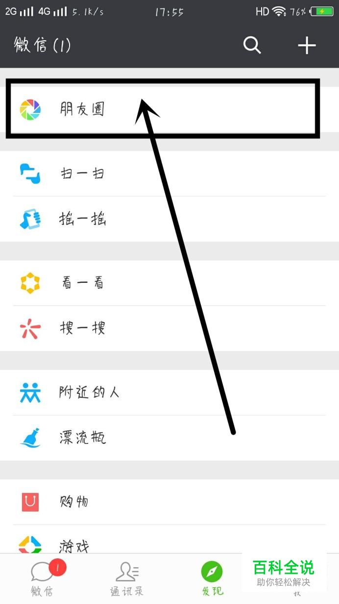 在“发现”页面,点击“朋友圈”,进入朋友圈,如图所示。