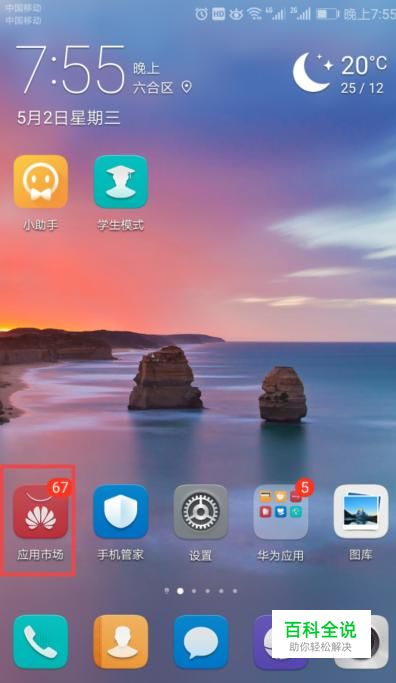 首先,我们打开我们的手机,然后点击手机桌面上的应用市场;