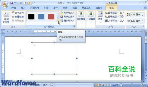 Word2007中内置有多种文本框样式供用户选择使用,这些样式包括边框类型、填充颜色等项目。在Word2007文档中设置文本框样式的步骤如下所述: