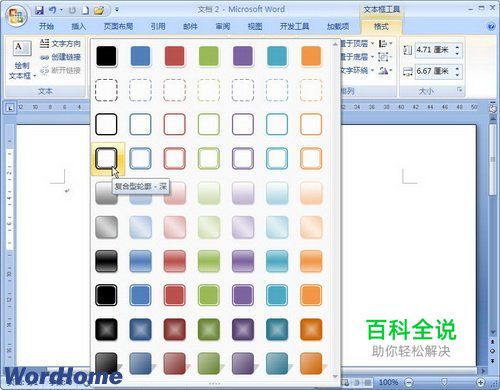 第2步,在打开的文本框样式面板中,选择合适的文本框样式和颜色即可,如图2008122802所示。图2008122802 文本框样式面板