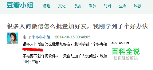 把这段话复制,发你所有的群,而当别人加你后问你怎么批量加好友,你就告诉他,把这段话复制发群。 是不是很简单?轻松就搞定了,大把的人加! 有人要问了,这个技巧粉丝精不精准?你卖房的在卖花的地方发当然不精准,粉丝精准不精准跟技巧有半毛钱关系?在于你挑选的平台是否精准,在于你编辑的内容是否精准。 也有人要问了,你这不是忽悠人吗?还有我的用户对吸粉加人方法不感兴趣怎么办? 首先,不管白猫黑猫抓到老鼠就是好猫。其次,你怕别人觉得你忽悠,你不会给真正存在的东西吗?比如小软件、资料文档、视频、礼品等等,谁让你完全照抄了?我之前也这样做过,用的就是电子书。最后,你的用户群对吸粉方法不感兴趣?那说明你还是知道你用户群的需求的,用他们需求的东西做诱饵补就完事了。 又有人要问了,我微信里没多少好友,发出去效果不大。我有说只能在微信朋友圈发了?QQ群不行吗,邮件不行吗,微博不行吗.......能展现信息的地方就行,有你用户聚集的地方就行,上面这些不都是吗?