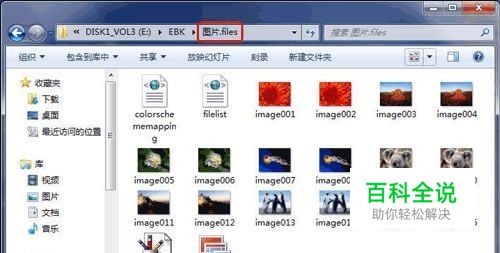 进入到上述网页文件所在的文件夹中,你会发现有一个名称为“文件名.files”(如“图片.files”),进入其中,前面 Word 文档中的图片就一一被保存在里面了。