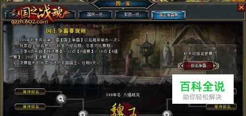 一比高低,英雄与英雄间的交流方式,不管是好友还是敌人,一场竞技都不可避免,目的或友好,或带有挑衅。《国之战魂》英雄间的争斗就是如此简单,无论是竞技场中,还是在横扫千军的竞技里,赢就赢的光明磊落,输也输得坦坦荡荡。 时间条件的限制,毫不影响挑战敌人的心态。在《国之战魂》横扫千军副本中,只要你是个人竞技榜的前100名,就可以进入次副本,在限定的1小时内,向其他英雄发起挑战,系统将会自动为你匹配与你实力相当的6名对手。从挑战开始,挑战时间1小时,在这1小时的时间里尽可能多的想别人挑战吧,奖励很丰厚噢! 争霸大赛,人人都希望自己是最后的赢家!在《国之战魂》中国王争霸赛成为很多英雄们热衷的一项活动。184年秋季开启第一届【国王争霸赛】以后年举办一次,是有玩家自主报名参加,玩家需在秋季报名,冬季比赛。冬季4点开启预选赛,12点为8强赛,16点为4强赛,20点进行决赛,决赛胜利的英雄则当选本国国王,国王任期4天。 王者之争,全新的国战来袭,让统治者们不再淡定。挑战国战任务,强夺城池,守卫自己的家园。这些才是高手间的对决,国家间的争斗,荣誉之争。高手对决,强者为王。《国之战魂》让你体验真正的三国征战玩法!