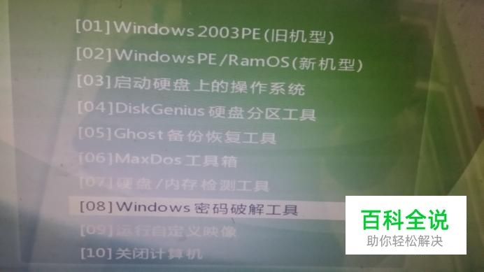 我们可以借助常用的U盘启动盘来清除原来的密码。把U盘启动盘插到电脑上,进主板BIOS设为U盘优先启动,在开机就会出现U盘启动菜单,我们选“Windows密码破解工具”。