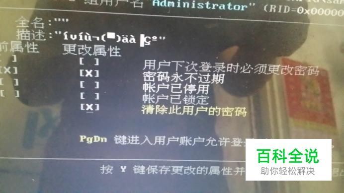 这里可以看到“清除此用户密码”已被选定,按Y键确认。