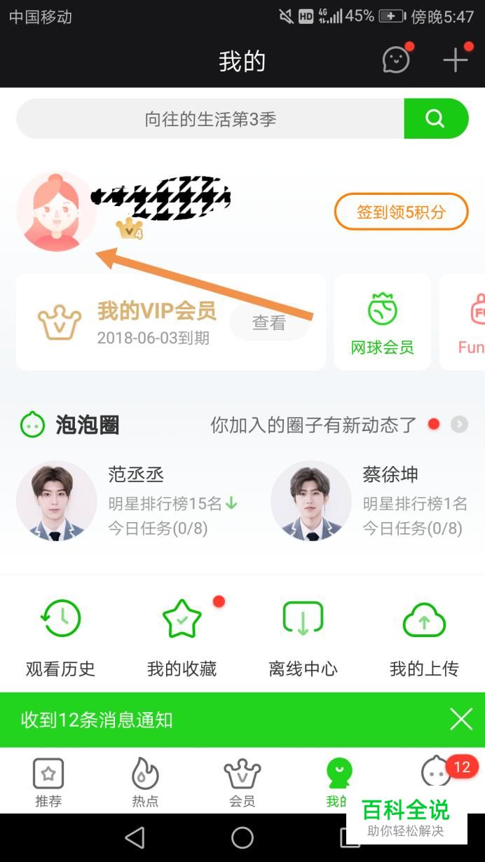 首先打开爱奇艺APP,点击我的,然后点击自己的会员头像,如下图。