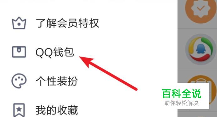点击后,会弹出侧栏菜单,点击里面的‘QQ钱包’