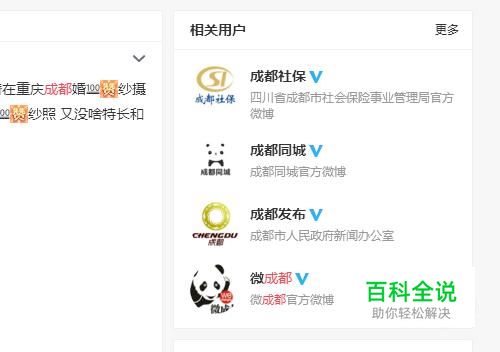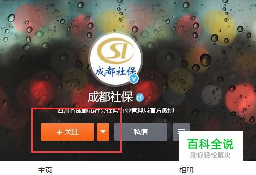 登录微博之后,我们可以搜索你想要的关注的公众号,比如说“成都社保”。