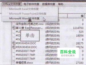 单击“Office文件恢复”菜单,在弹出的菜单列表中单击“Microsoft Word文件恢复”命令,如图2所示。