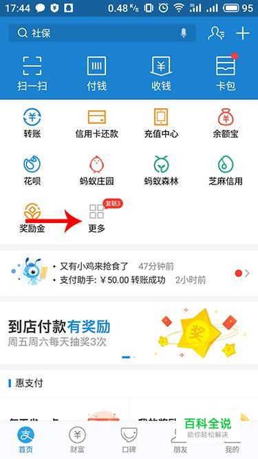 进入支付宝app界面,在选项中点击“更多”