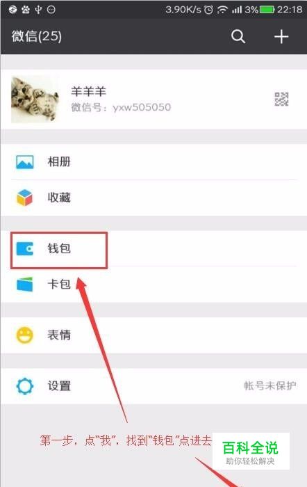 第一步,打开微信在最右下角点“我”,如图找到“钱包”点进去。