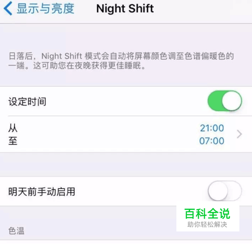 通过设置,可以选择自己喜欢的夜间色温,以及选择是手动开启,还是每天定时开启关闭。