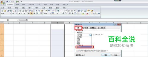 在弹出的对话框中选择设置选项卡,在允许的下拉列表中选择自定义。